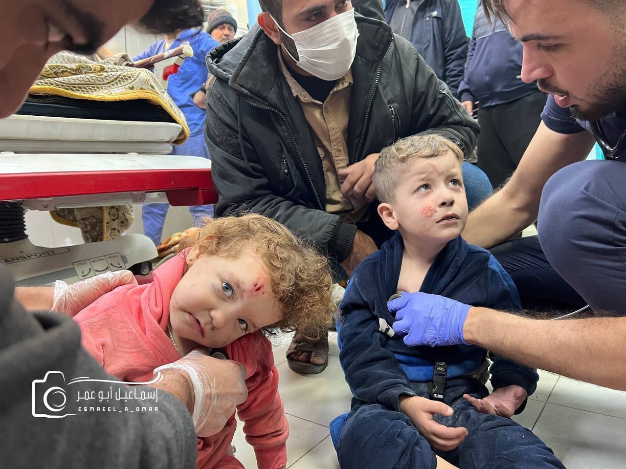 جرحى قصف الاحتلال الإسرائيلي من الأطفال، يفترشون الأرض في مستشفيات قطاع غزة، لقلة الإمكانات وكثرة عدد المصابين والجرحى.