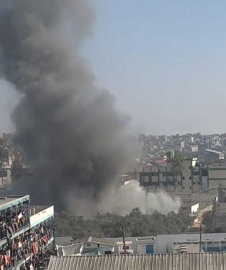 قام الطيران الحربي الإسرائيلي بتاريخ 1/1/2024 باستهداف منطقة بجوار مركز للإيواء، ما أدى الى وقوع إصابات في صفوف النازحين جراء تطاير شظايا القصف عليهم في مخيم النصيرات.