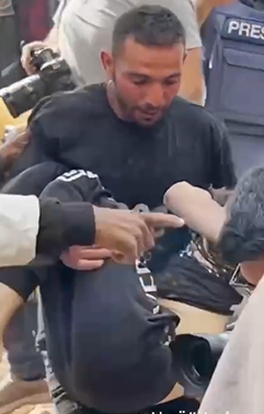جثامين شهداء من الأطفال والنساء تحت أنقاض منزل سوته طائرات الاحتلال بالأرض خلال فصفها العنيف على مخيم النصيرات.