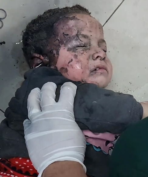 قام طيران الاحتـ-لال الإسرا-ئيلي بقصف منزل طفلة كانت آمنة في منزلها بتاريخ 10/2/2024 في محافظة رفح دون سابق إنذار، ما أدى إلى إصابتها بإصابات خطيرة في جميع أنحاء جسدها.