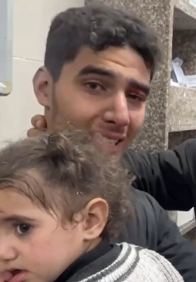 أب يطمئن على أبناءه الذين أصيبوا في قصف اسرائيلي على منزلهم في خانيونس