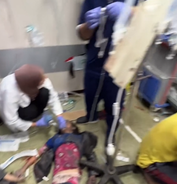 جرحى قصف الاحتلال الإسرائيلي من الأطفال، يفترشون الأرض في مستشفيات قطاع غزة، لقلة الإمكانات وكثرة عدد المصابين والجرحى.
