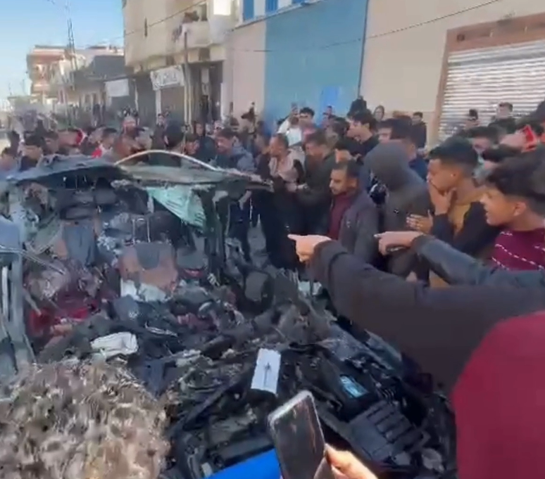 مركبة الصحفيين التي قصفها طيران الاحتلال في رفح مما أدى لاستشهاد حمزة الدحدوح ومصطفى ثريا
