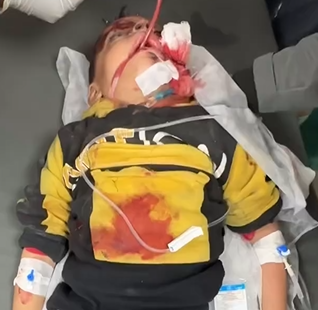 مجموعة من الأطفال المصابين وصلوا إلى مستشفى شهداء الأقصى إثر قصف طيران الاحتـ-لال الإسرا-ئيلي لمخيم النصيرات.