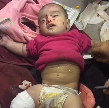مجموعة من الأطفال مجهولو الهوية في مجمع الشفاء الطبي في مدينة غزة، كل طفل هو الناجي الوحيد من عائلته.