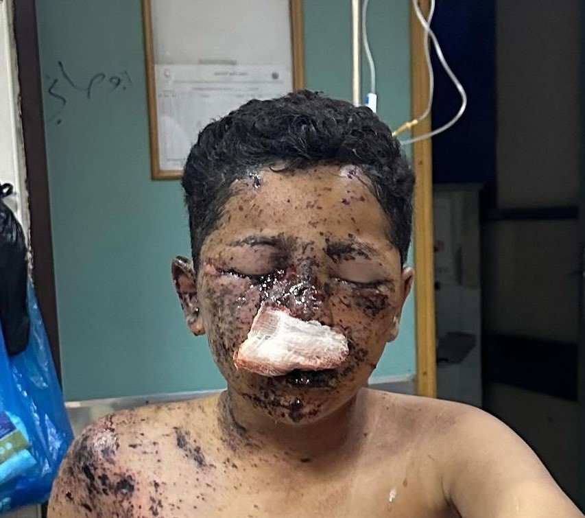 “نفسي أعرف آكل وأعرف أشم” الطفل عادل العشي أصيب إصابات خطيرة في كامل جسده إثر قصف طيران الاحتـ-لال الإسرا-ئيلي على منزله، ففقد القدرة على البصر والشم والتذوق.