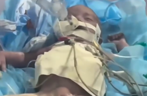 محاولة إنعاش جنين بعد استشهاد أمه في قصف الاحتـ-لال الإسرا-ئيلي استشهدف منزل عائلة صباح في منطقة تل الزعتر.