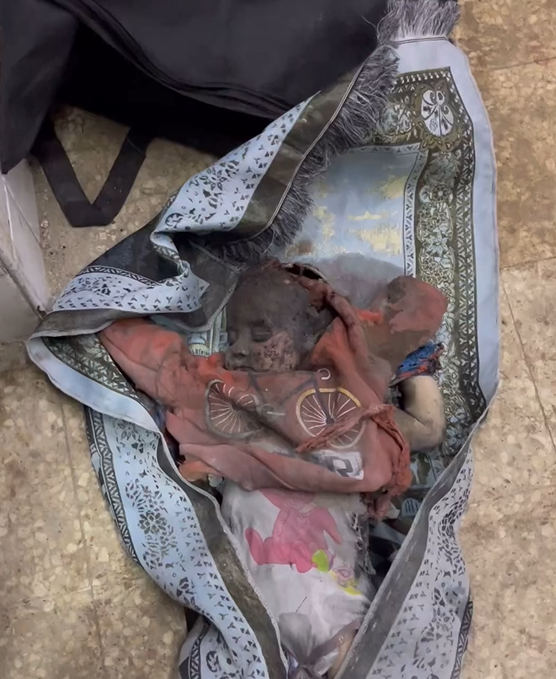 أب يودع ابنته الطفلة ميرفت، التي استشدت جراء قصف الاحتـ-لال الإسرائيلي في مخيم النصيرات وسط قطاع غزة.