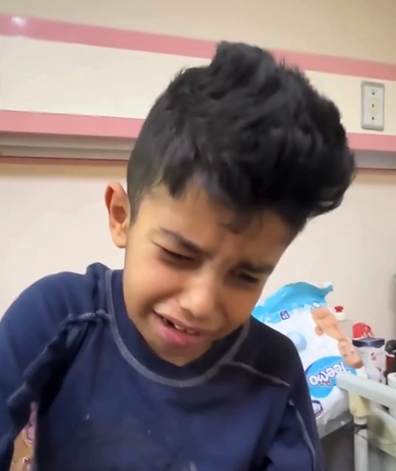 محمد أبو شغيبة ذو التسع سنوات، أصيب نتيجة قصف الاحتـ-لال الإسرائيلي للمنزل المجاور لمنزله، ما أدى إلى إصابته بتهتك بالعظام في القدم اليمنى.
