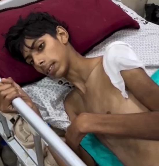 الطفلان رفيق ورفيف الناجيان الوحيدان من مجزرة مروعة ارتكبها الاحتـ-لال الإسرا-ئيلي بحق عائلتهما في مدينة غزة، مصابان بإصابات بالغة ويعانيان من سوء التغذية وعدم توفر العلاج في مجمع الشفاء الطبي بسبب منع الاحتـ-لال الإسرا-ئيلي دخول الدواء والغذاء لمدينة غزة وشمال قطاع غزة.