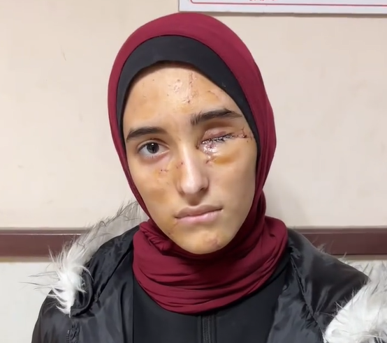 قام طيران الاحتـ-لال الإسرا-ئيلي بقصف المنزل المجاور للمنزل الذي تقطن فيه تالا المدهون؛ فأصيبت وفقدت عينها.