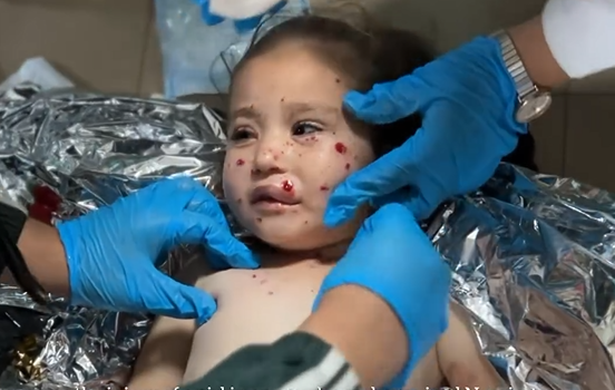 إصابة طفلة في يدها ووجهها وكامل جسدها، إثر قصف منزلها في مخيم النصيرات جنوب قطاع غزة دون سابق إنذار.