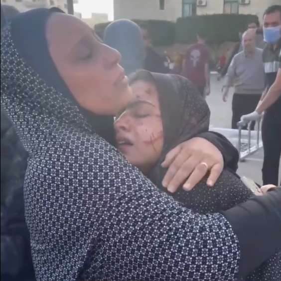 قام طيران الاحتـ-لال الإسرائيلي باستهداف منزل وائل الصحفي وائل الدحدوح في مخيم النصيرات جنوب قطاع غزة الذي يضم عددًا من المدنيين دون سابق إنذار. ابنة وائل الدحدوح المصابة تودع أمها وأختها الشهيدات.