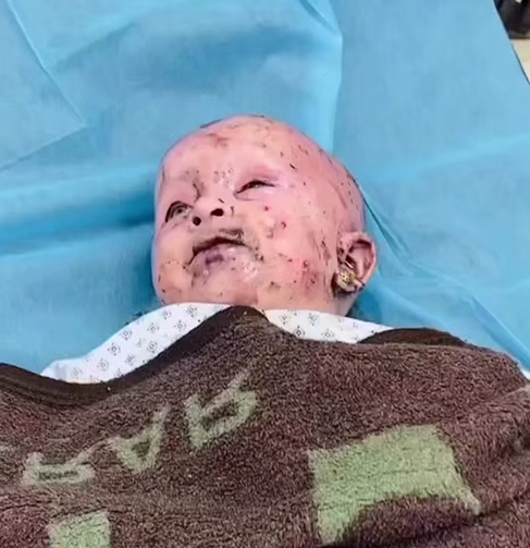 طفلة عمرها أشهر تئنّ من الألم بعد تعرضها لقصف الاحتـ-لال الإسرا-ئيلي.