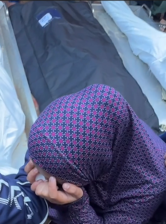 قام طيران الاحتـ-لال الإسرا-ئيلي بقصف منزل في محافظة خانيونس راح ضحيته العديد من النساء والأطفال، ولكثرة عدد الضحايا كان يجب على الفتاة أن تتعرف على جثة والدتها.